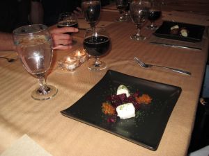 I won’t try to act like I have the power to give out Michelin stars. All I’m going to say is Head Chef Dan put on a 5-course meal, including this habanero relish/beet-pancetta hash/orange goat cheese MARSHMALLOW item: