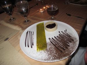 And then, all you really need to know about dessert is that Dan painted the plate with pistachio butter and drizzled single hop ganache around what happened to be toasted barley pudding and cherry compote …