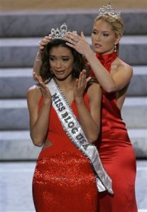 We buy the cocktail dresses and the stilettos and a pageant sash and head home.