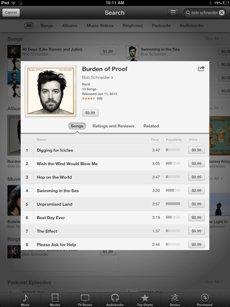 I think pure Genius would be noticing that I have every Bob Schneider song ever recorded — even The Sons of Ralph on the otherwise good Californian album — and maybe alert me to the fact that Bob released a new album on June 11.
