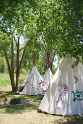 Twenty minutes from I.F., Ririe is major spudville, but also home to the South Fork of the Snake River. A few years ago, during our Lewis and Clark Bicentennial sleep-in-a-teepee phase, we ran across Mountain River Ranch, a campground in the middle of a cottonwood jungle. On the Sunday night after the 4th of July holiday, we had the run of the place and set up our tent in the choicest of locations.