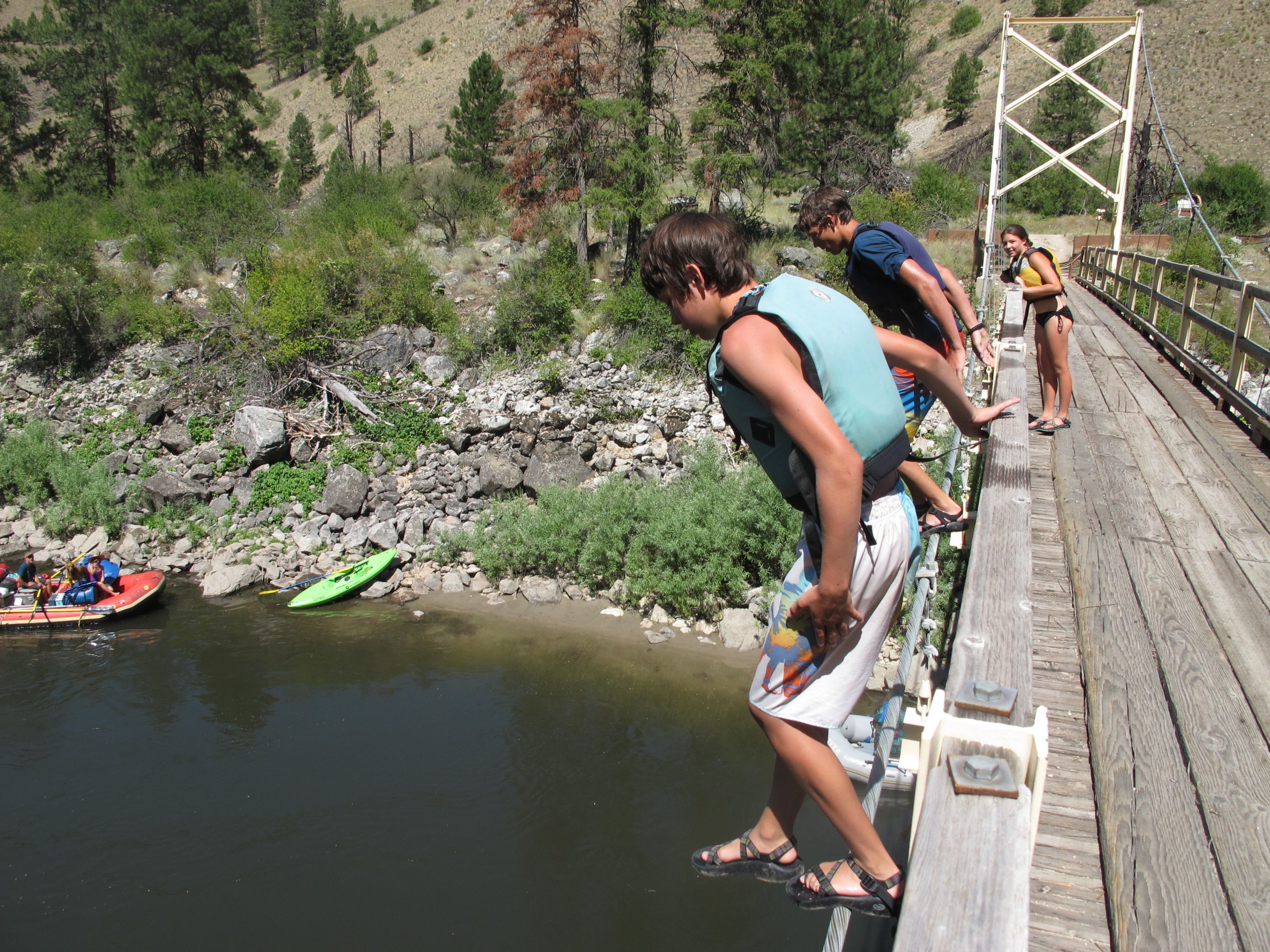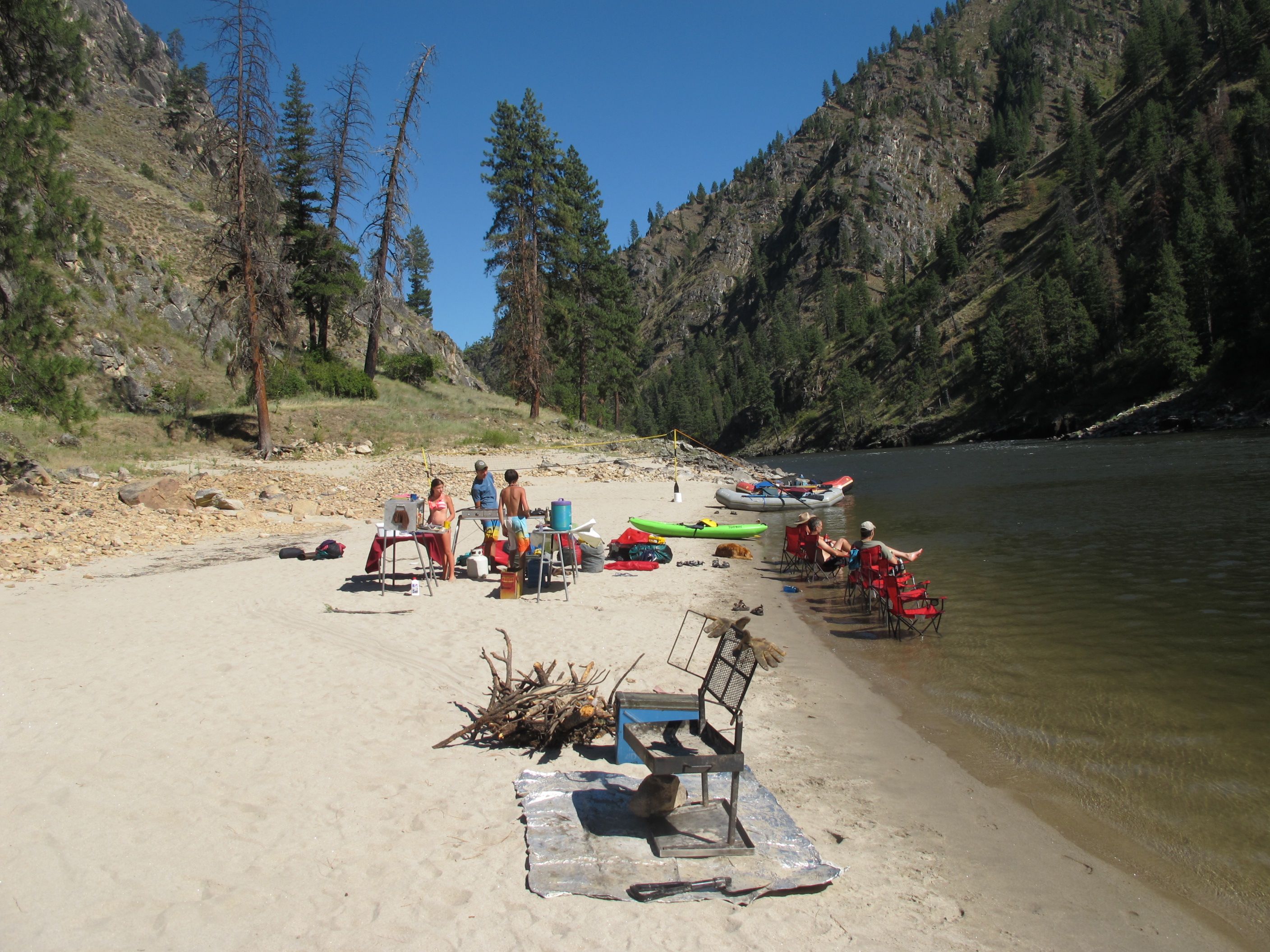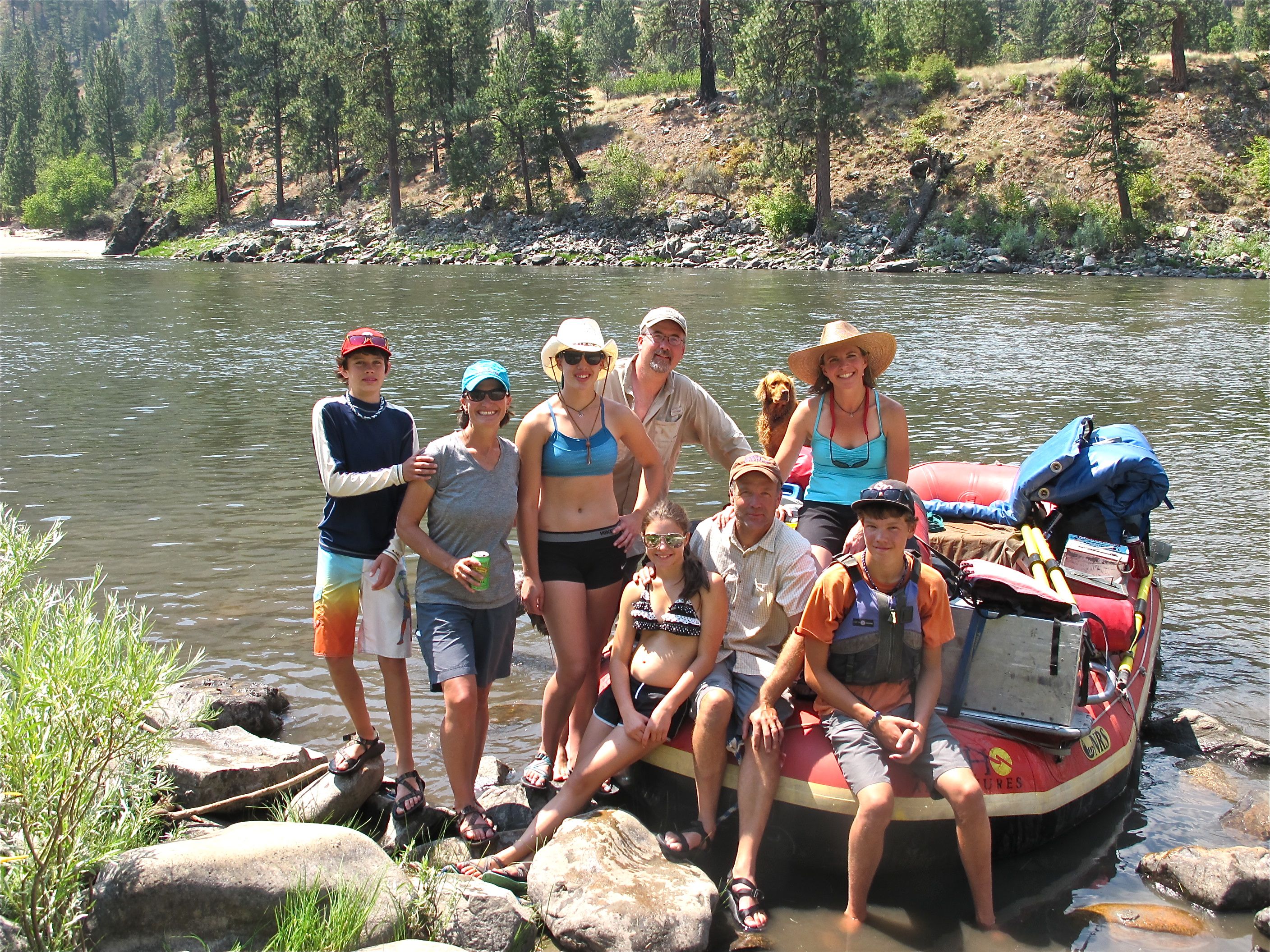 So the beauty and tranquility of the Salmon had a whole new twist when my peeps and my sidekick Lucy’s family took our family vacations to the river this summer. The Main Salmon (as we floated it) goes for about 80 miles. Its numerous rapids at July’s water level didn’t get above a Class 3; but taking 4 teenagers ages 13, 14, 15, and 16 certainly merits a rating much higher than that. If Class 6 is a waterfall, this should be Class 7 — a waterfall that is dry at the bottom.