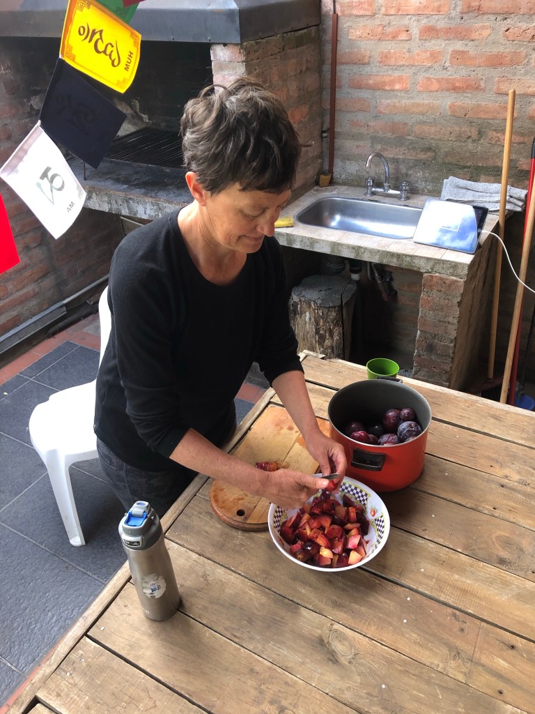 Chef obsessively poured over the airline websites (and occasionally listened to the hold music which truly could use a little updating). I checked in on the US Embassy feed, and offered to be the new groundskeeper for our Air BNB hosts. Liliana let me chop plums for jam.