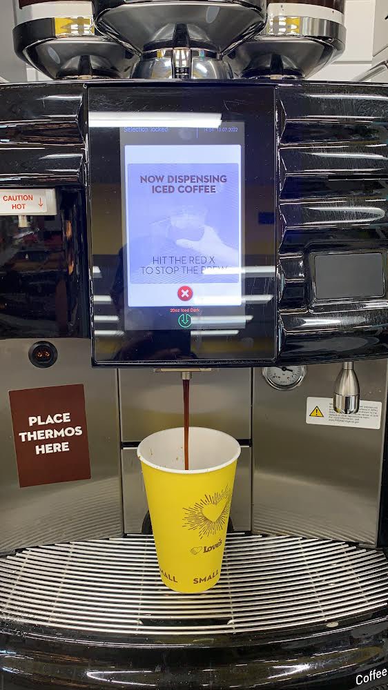 Podunk though, she’s scrappy and seizes the opportunity to begin rating available Utah coffee. I double down on my Tums intake, accept the challenge, and pray Juan Valdez isn’t precluded from riding his donkey to the Beehive State. More importantly, on a subsequent daily outing, Podunk turns right at the stop sign and discovers the true interstate oasis on the south side of town. No mirage this time. In all its yellow glory, a Love’s ❤️ gas station rises from the desert floor. Inside, a custom coffee dispenser that uses words like premium and roast.