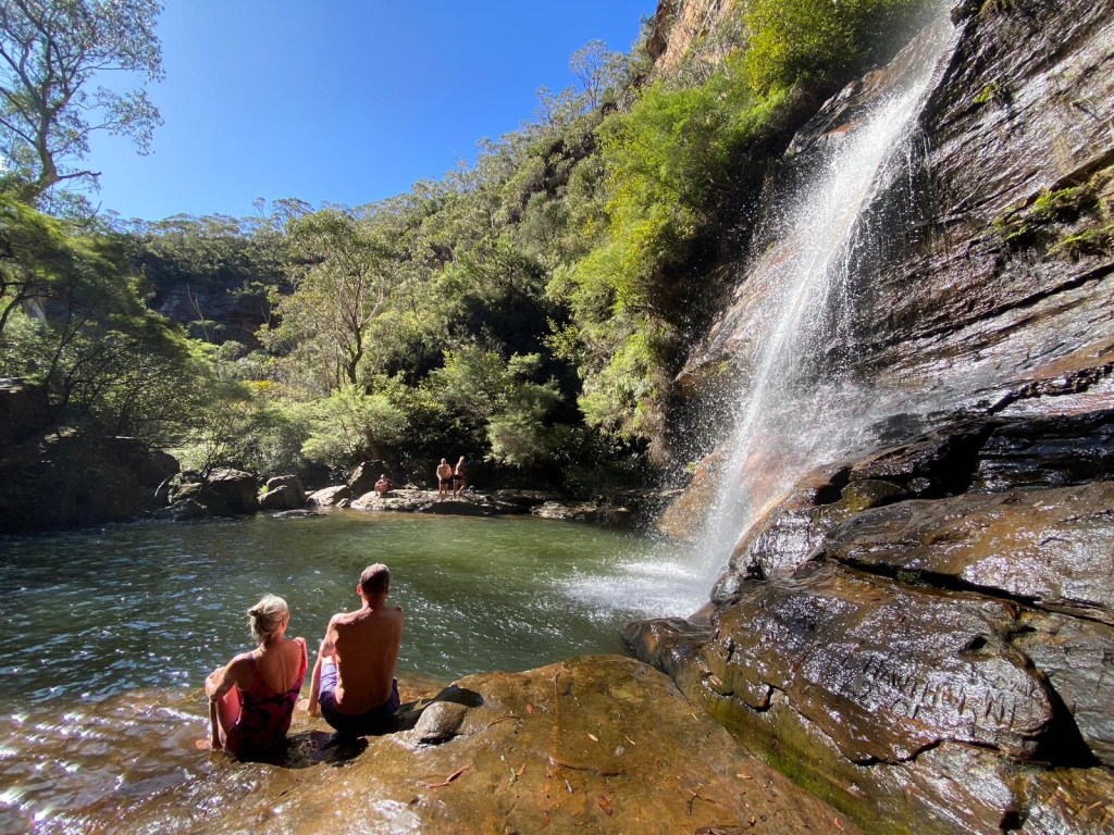 We spent a night in Katoomba in the Blue Mountains, the next morning plunging under Minnehaha Falls. Maxi Haha is more like it. The Falls gets the last laugh by sporting an incredibly arctic pool all the while appearing convincingly tropical. Those Cold Water Therapy kooks can bite me. Ice baths are a terrible idea and I very nearly had a heart attack shortly after my double birthday.
