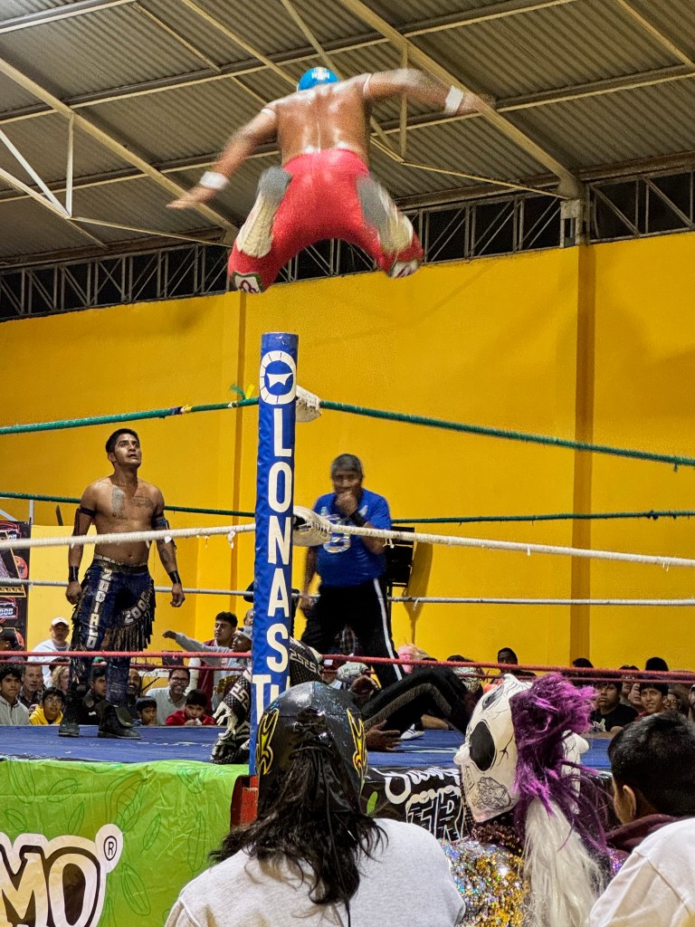 Culture. The neighborhood we stayed in was called Jalatlaco, which some people without as much of a minor in Spanish as I have gringoed to Hella Taco. The colorful stucco buildings served as galleries for the murals in every direction. My favorite studio was the Collective Subterraneos, an edgy printmaking workshop whose creations adorned many of the neighborhood buildings. The Museum of Cultures in the city and Monte Alban, the impressive ruins dating back to 500 BC right above the city, were both mind-blowing. And then there was the luchador matches. We had never been to see the luchadores and I have to imagine our sensation was much like that of people who witness Podunk’s demolition derby for the first time. World Wrestling Federation meets Marvel Comics meets Pancho Villa. I do NOT recommend the mango chelada with the sugar straw, however.  No es bueno.